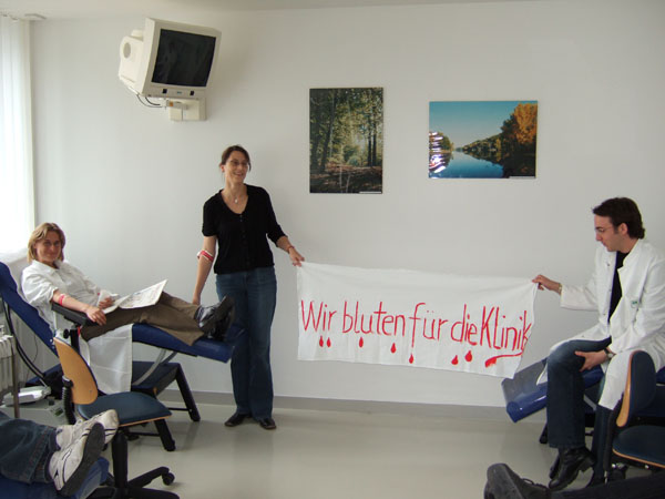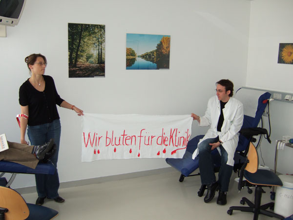 Protestaktion in Halle am 02.06.06 - Bluten für den Streik