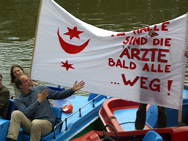 mit zu uns streikenden Ärzten ins Boot. Nach der Paddeltour begleiten